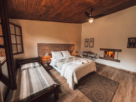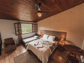 Nosso Bangalô Médio foi pensado para quem não abre mão de conforto extra. Com cama de casal + cama de solteiro, é o ninho perfeito para uma pequena família ou para quem viaja com o pet e quer mais liberdade.